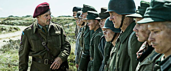 När filmen börjar kör sergeant Carl Rasmussen (Roland Møller) förbi tyska soldater som marscherar ut ur landet (eller är fångar), och kan inte behärska sitt hat när han ser att en av dem håller en dansk flagga under armen. Han får ett fullkomligt utbrott, vrålar att ”det här är mitt land!” och misshandlar tysken. Nu är det ombytta roller, och hans agerande känns på något vis logiskt, trots brutaliteten.