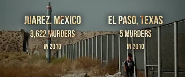 Sedan är det ju all den där excessen, Culiacán har fött en del gangsterkungar. Där finns en begravningsplats som ser ut som en mindre stad. Alla dessa döda banditer har stora gravplatser, mindre palats. Allt är så absurt och den intensiva känslan av total meningslöshet är immanent. Absurditeten når astronomiska nivåer när en självsäker amerikansk gränspolis står framför staketet som anlagts mot Mexiko. Han förkunnar stolt, i siffror, hur mycket antalet gränsöverskridare sjunkit sedan bygget. Schwarz frågar då om det bara inte är så att polisen helt enkelt inte fångar lika många som förut och att det finns ett stort mörkertal. En fråga som gör polisen alldeles perplex, han säger att han aldrig fått den frågan och ber om tillstånd att få ringa sin chef – och gör det. Hela scenen är besvärande för alla inblandade och samtidigt talande för den absurda situationen, samt även en skildring av den hierarki som finns inom amerikansk polis, och kanske till och med i det amerikanska arbetslivet överlag.