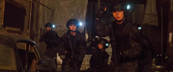 Utomjordingarna kan ta över människokroppar, som i V (1983) typ. För att stoppa denna femte våg bildar människorna arméer bestående av barn och ungdomar (!). Det är ju alltid så lägligt i sådana här berättelser att det är unga människor som ska rädda världen. Och det serveras alltid någon väldigt krystad förklaring till varför så just är fallet – hej Ender’s Game (2013)!